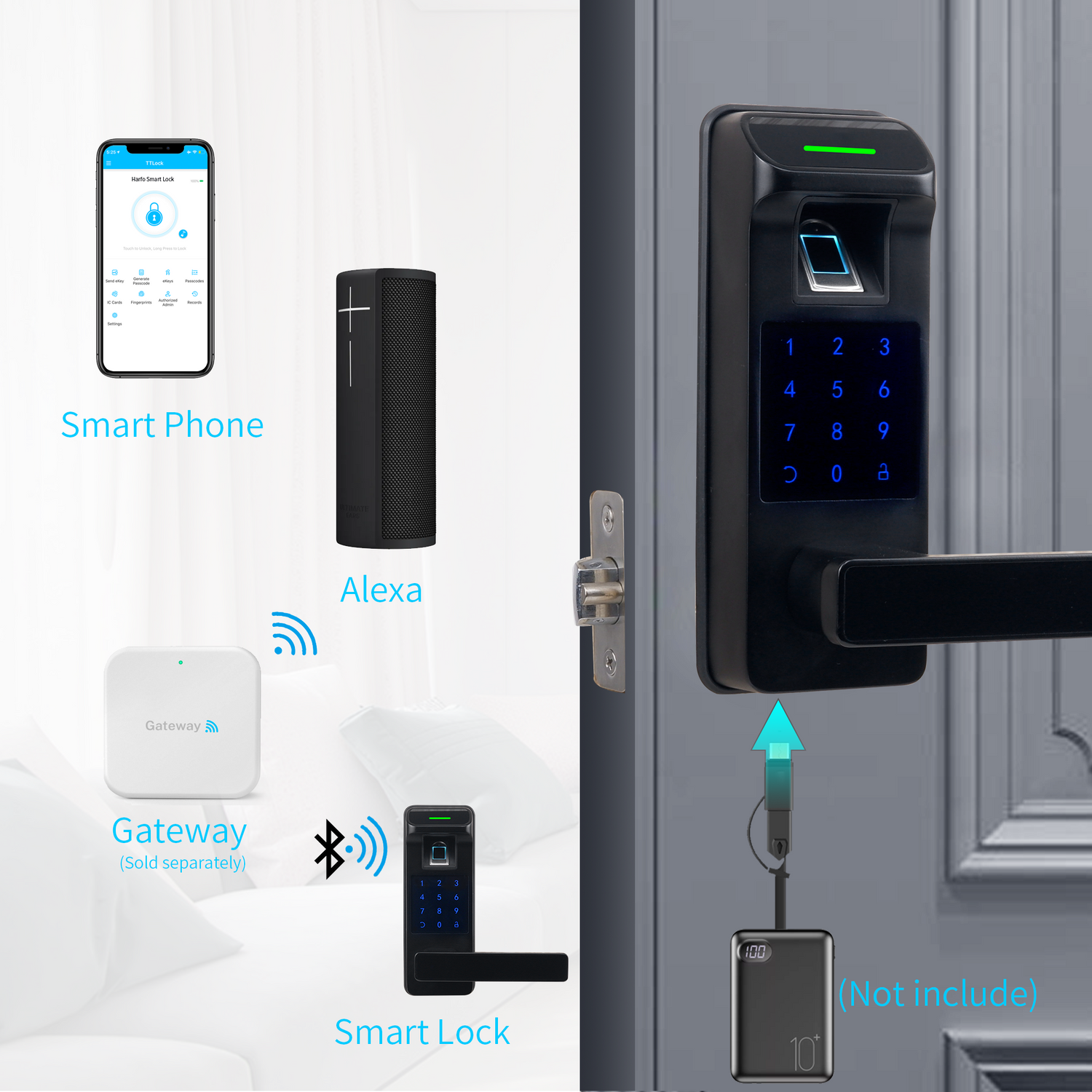- [Remote Control / WiFi Access]Paired the keyless entry door lock with Harfo wi-fi Gateway (sold separately), you can lock/unlock your keyless entry door lock anytime anywhere, you can set up codes remotely and check access records.