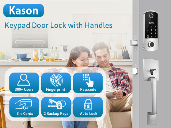 Auto-locking, Easy installation & Use, Electronic Keypad Deadbolt with Door Handle, 300+ Users, Fingerprint & passcode & Ic cards & Keys unlockAuto-locking, Easy installation & Use, Electronic Keypad Deadbolt with Door Handle, 300+ Users, Fingerprint & passcode & Ic cards & Keys unlock