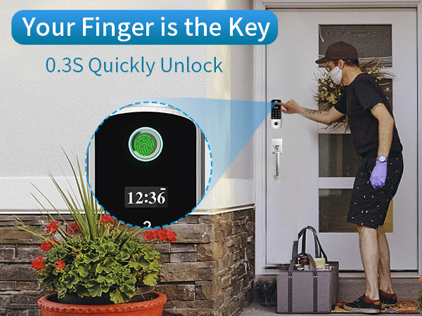 - [Multiple Ways to Unlock] 4 ways to access: Biometric Fingerprint + Keypad Code + IC Card + Physical Key. Upgraded identification fingerprint door lock brings excellent keyless access experience.Unlock the lock with one touch in just 0.3s.