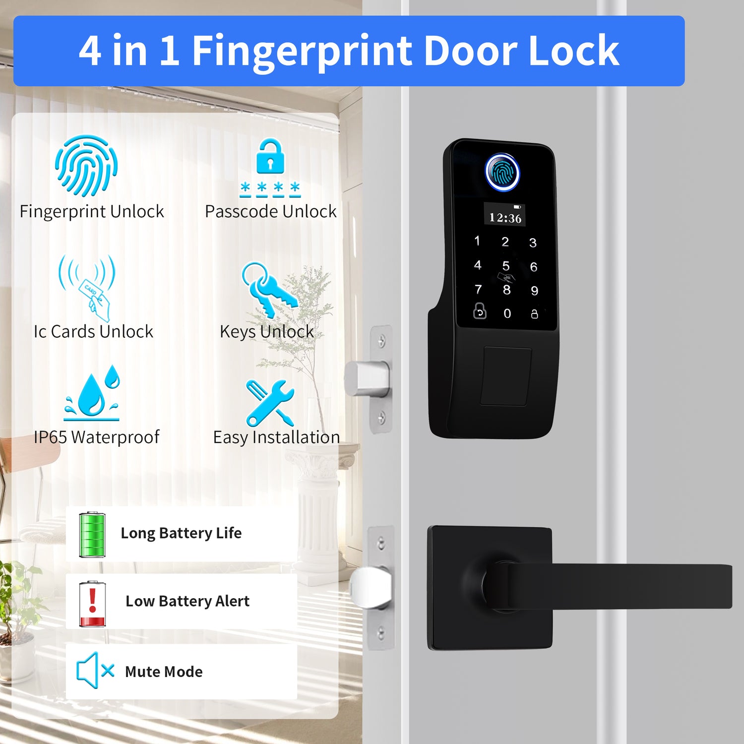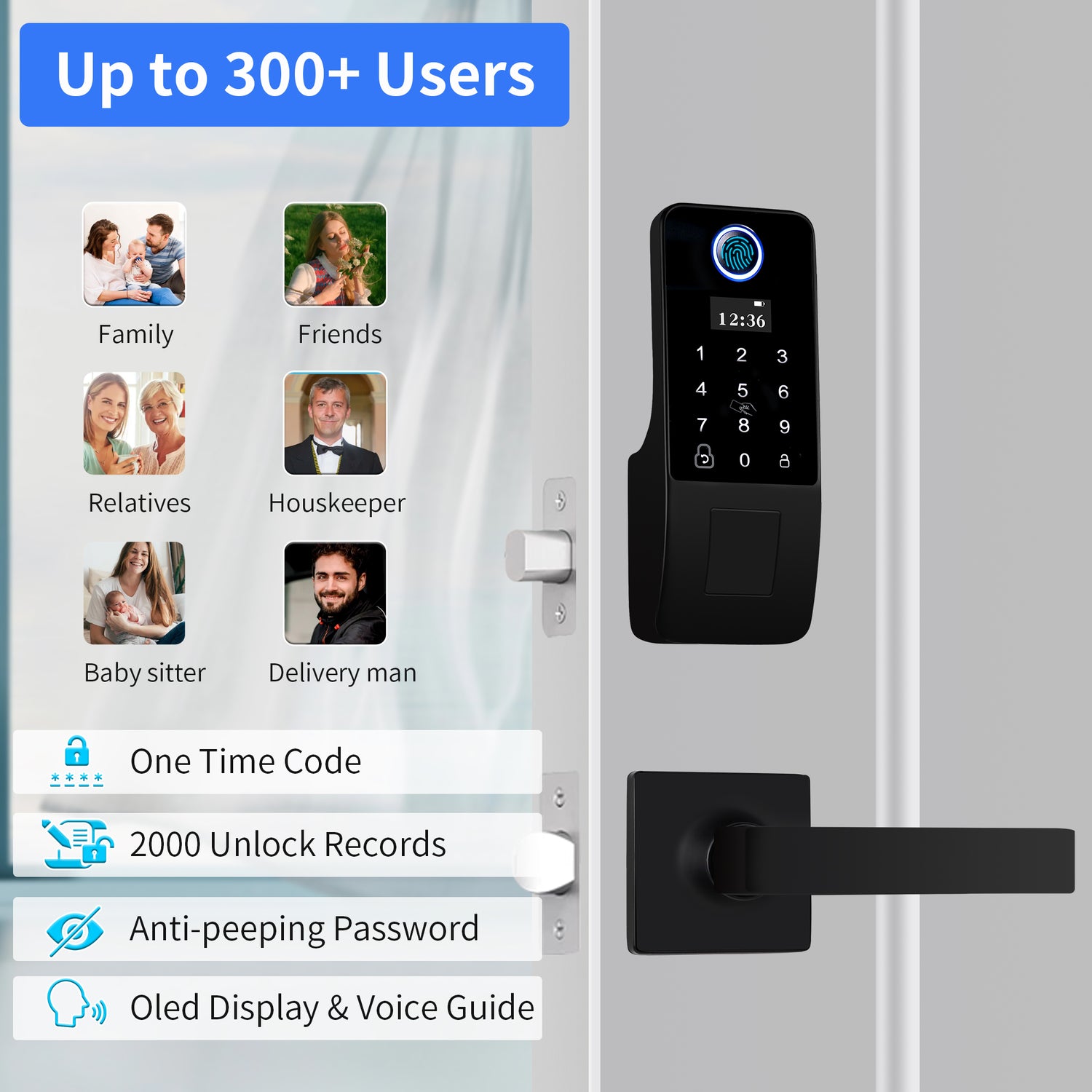 - [Advanced Fingerprint Unlock] Your finger is the key, the smart door lock identify your fingerprint within 0.3 seconds, and unlocks your door within 1 second with a 99.99% recognition rate.